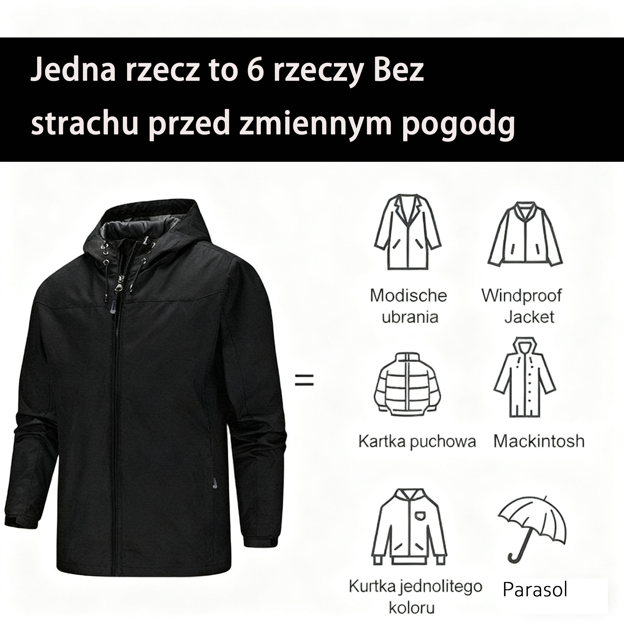 Unisex, wygodna, wiatroszczelna kurtka z regulacją temperatury